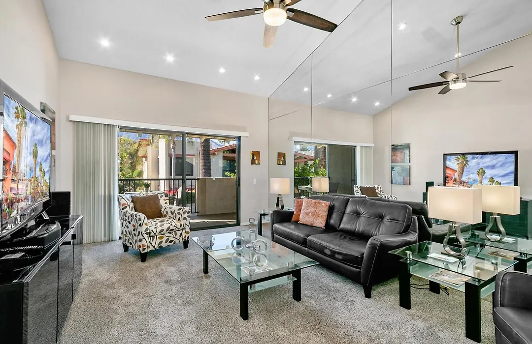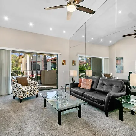 The 2-bedroom Ranch Club Serenity Palm Springs villa, located a mere 1.4 km from the El Paseo Collection, invites guests to relax in a hot tub.